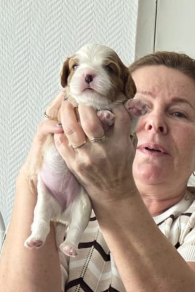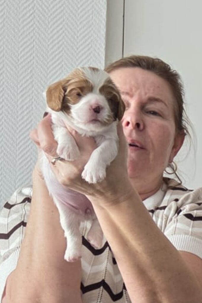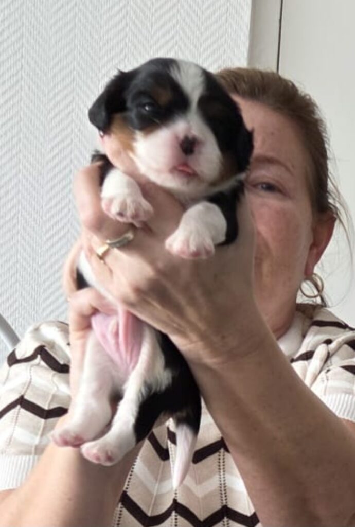 13 februari 2026 puppy's geboren van Allisianna. 2 Blenheim teefjes en 2 Tricolor reutjes.